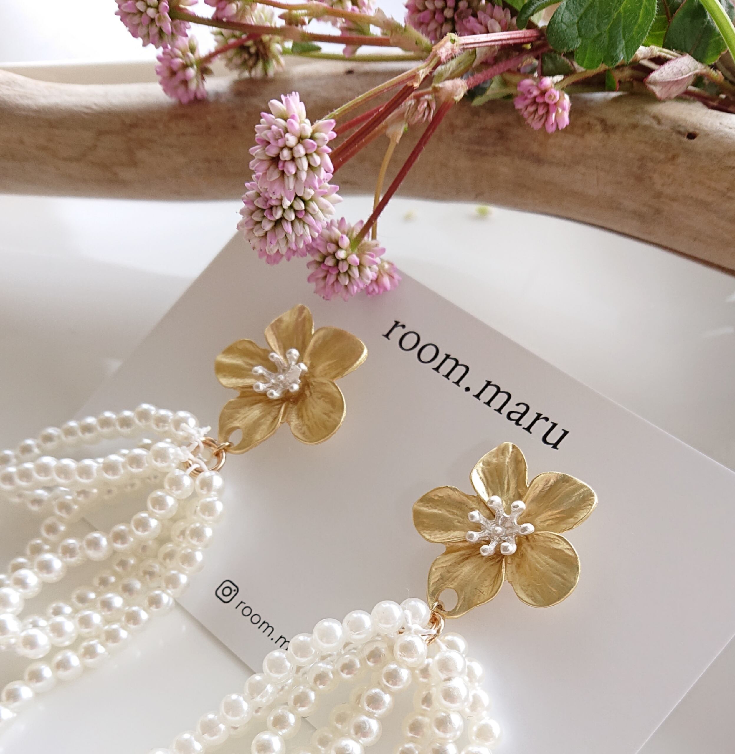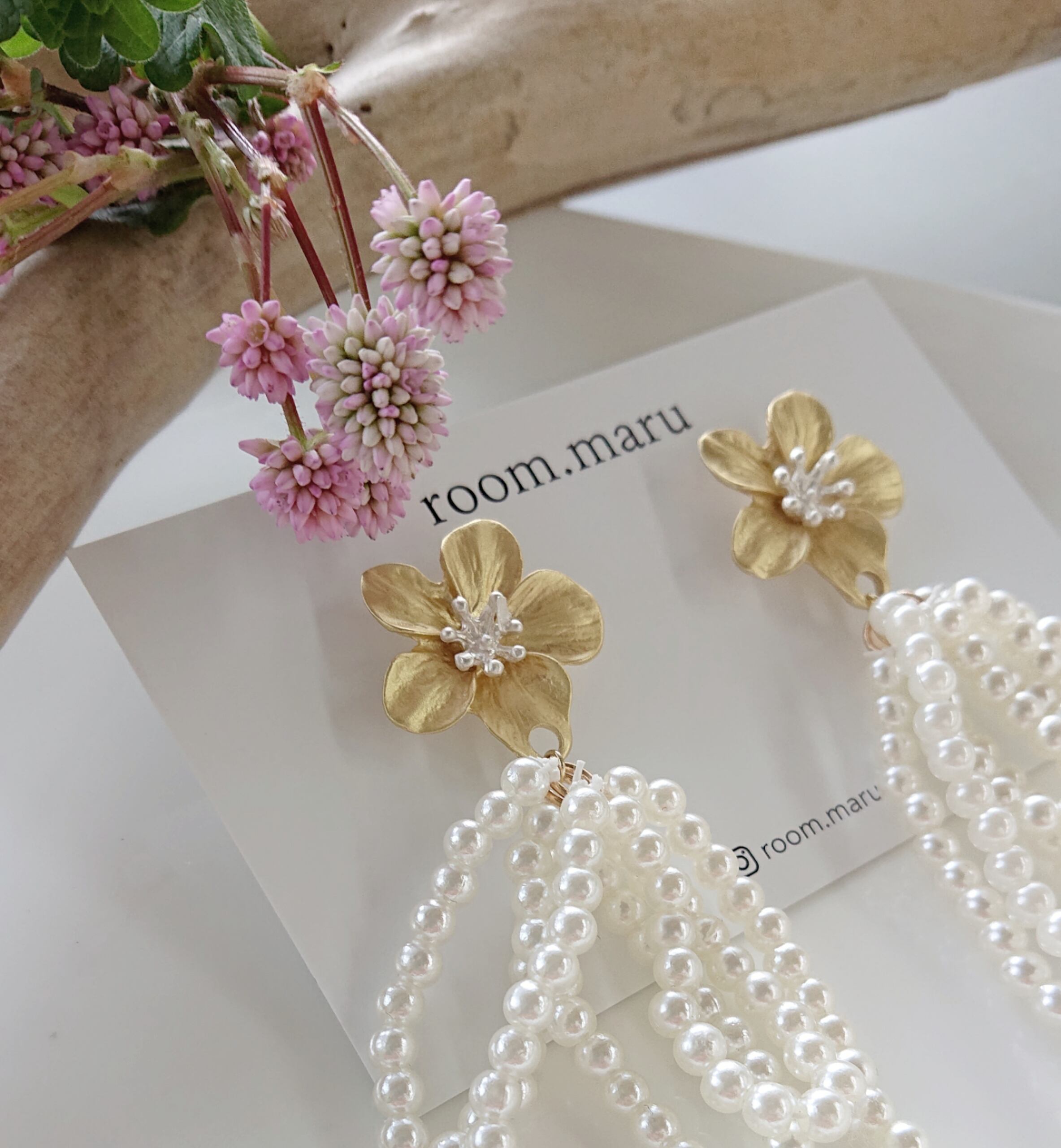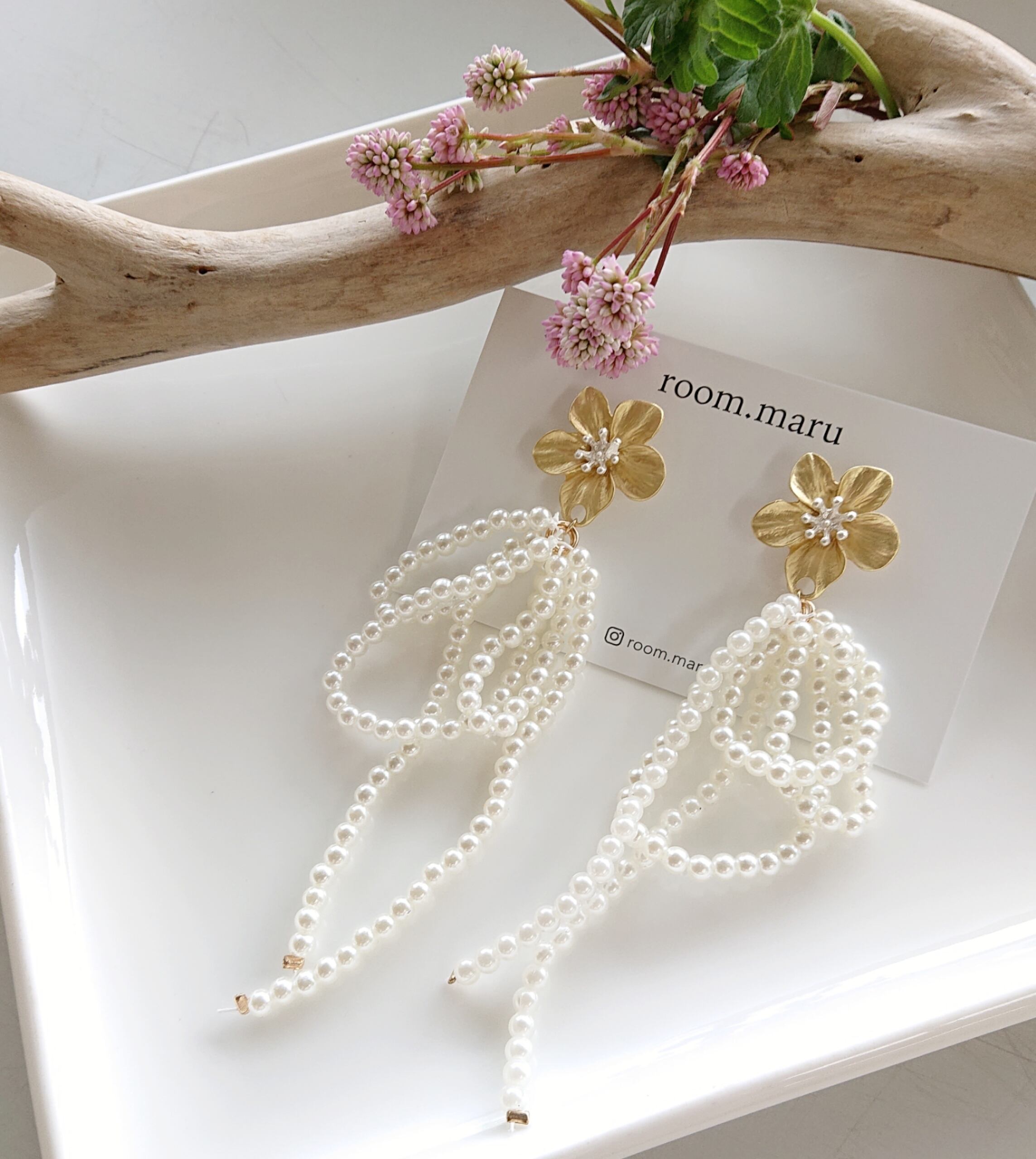 くすみフラワー×リボンパールタッセル